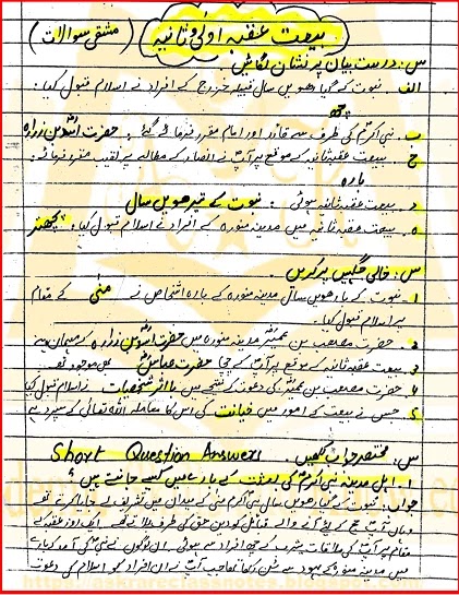 اسلامیات کلاس پنجم : باب سوم: سیرت طیبہ : سبق نمبر۲: بیت عقبہ اولئِ و ثانیہ کا حل شدہ مشق : یکساں قومی نصاب پاکستان 2023-2024 پر مبنی نئی کتاب/ نیا نصاب