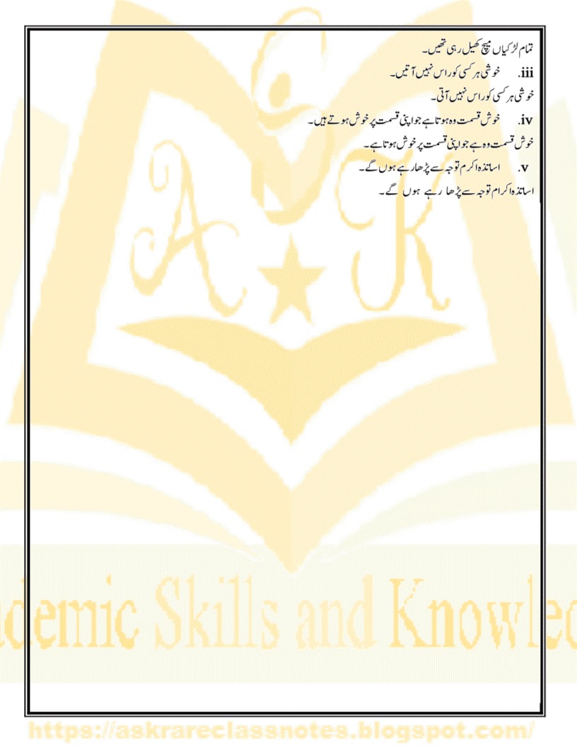 (Class 8 Urdu (اُردو) Notes for 8th Centralized Exam 2023-2024 and onward, FDE, Islamabad)