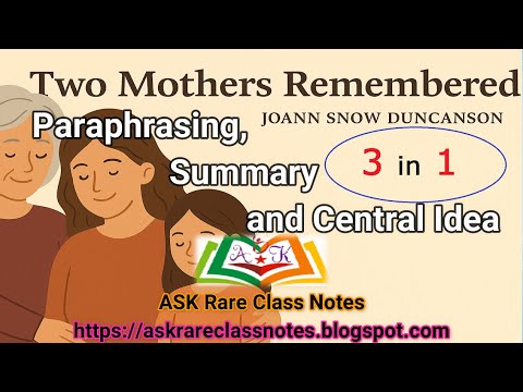 👇Below are two different Central Idea:The central idea of “Two Mothers Remembered” is the unchanging love between a mother and child, even as the mother goes through different stages of life. The poet lovingly recalls two versions of her mother—the first, a strong, caring, and nurturing woman who gave her birth, raised her, and taught her valuable lessons; and the second, an older and weaker version of the same mother, whose memory faded and who became dependent like a child. Although this transformation was painful to witness, the poet accepted both with the same affection and respect. The poem teaches us that true love and respect for parents should continue in every stage of their life, whether they are strong or dependent. It also carries the message that children should treat their mothers with the same devotion their mothers once showed them.